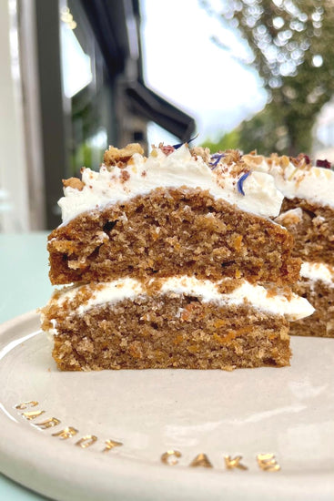 Moelleux à la carotte, légèrement parfumé de cannelle, orange et noix de coco et garni d’une crème au chocolat blanc !