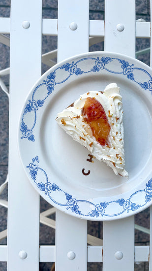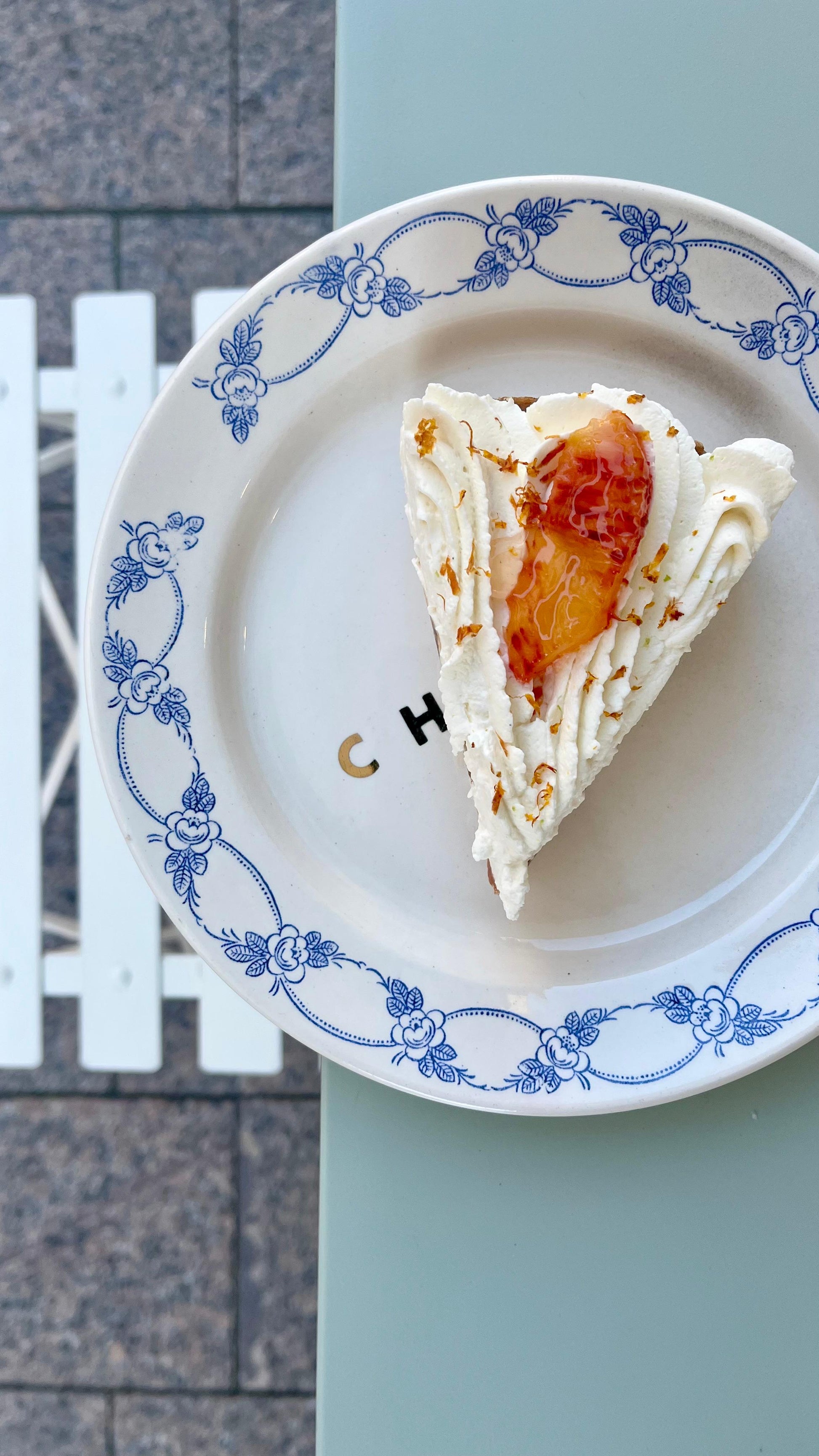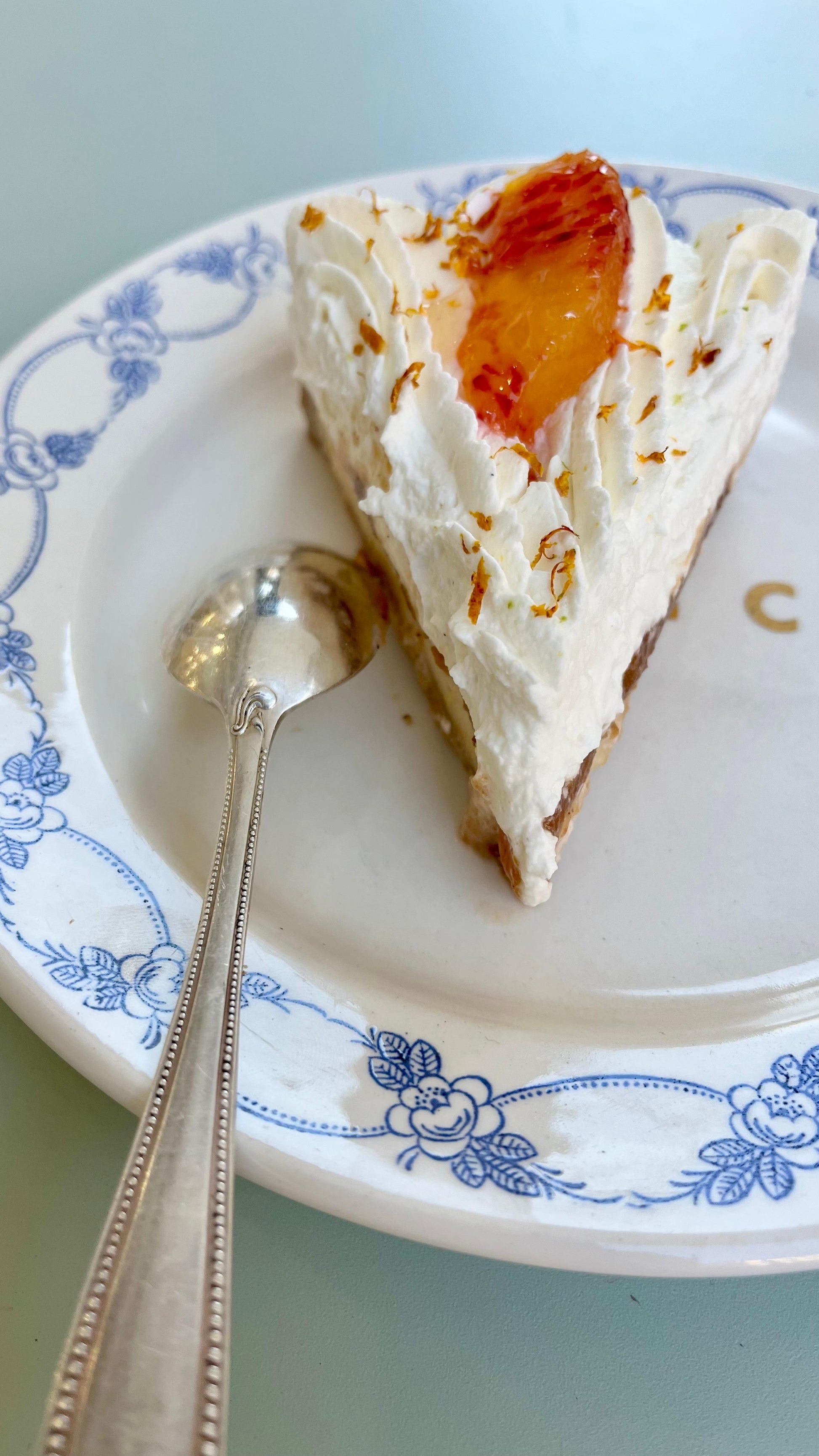 Base de pĂąte sablĂ©e, crĂ©meux Ă lâorange sanguine et pamplemousse, confit dâagrumes et poivre de timut, crĂšme fouettĂ©e Ă la fleur dâoranger.Â
